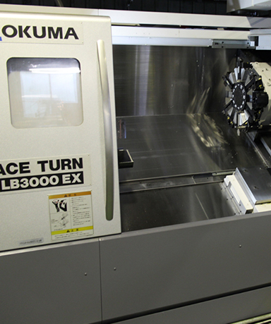 特徴:小物から中物までの旋盤加工を行います。振れ止めを装着してシャフト加工や中繰り加工も対応しています。